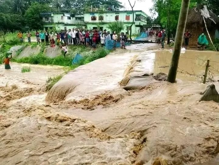 রাকিবুল আওয়াল পাপুল, শেরপুর: টানা কয়েক দিনের ভারী বৃষ্টি আর ভারতের উজান থেকে নেমে আসা পাহাড়ি ঢলে শেরপুরের ঝিনাইগাতী উপজেলার মহারশি নদীর বাঁধ ভেঙে সদর বাজারসহ নিম্নাঞ্চল প্লাবিত হয়েছে।