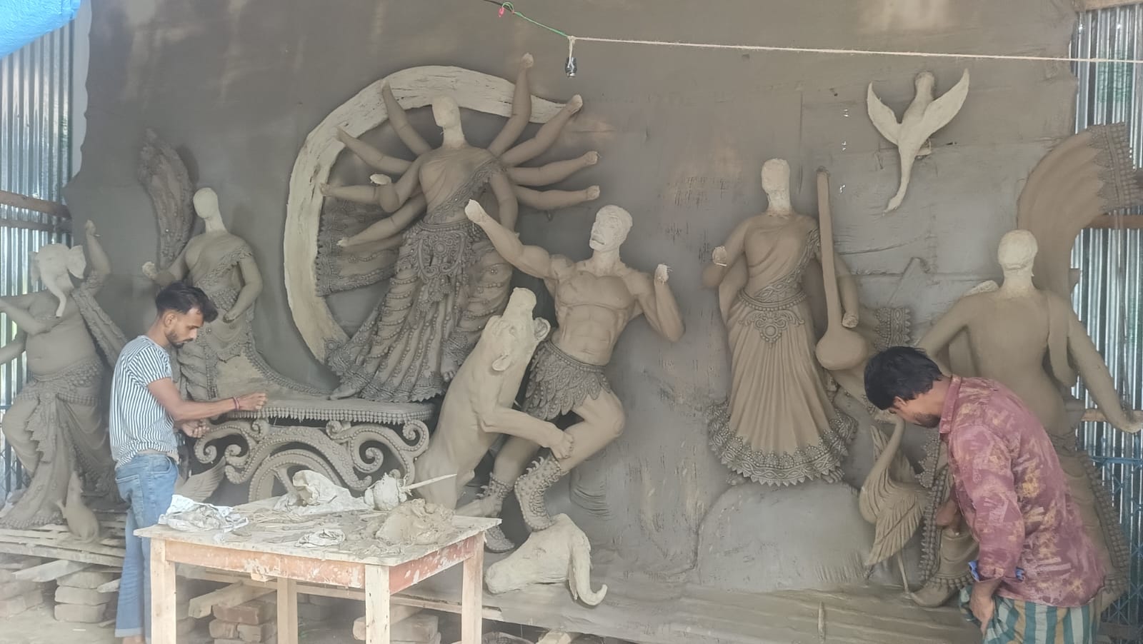 প্রতিমা তৈরিতে ব্যস্ত মাদারগঞ্জের প্রতিমা শিল্পীরা
