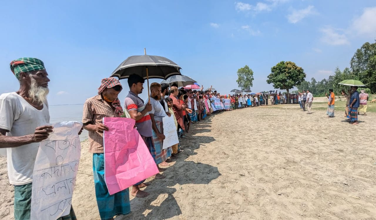নদী ভাঙ্গন রোধে কার্যকর পদক্ষেপ নেওয়ার দাবিতে মানববন্ধন