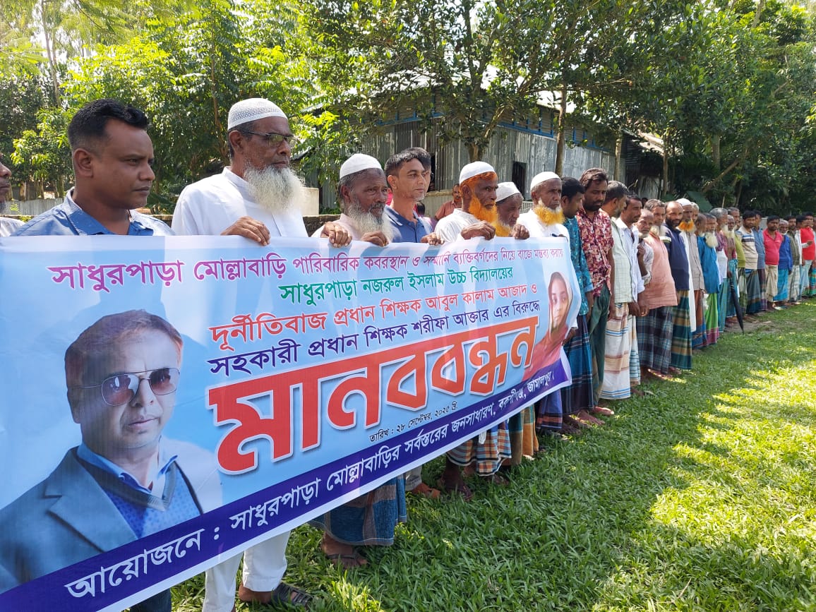 প্রধান শিক্ষকের অপসারণের দাবিতে এলাকাবাসীর মানববন্ধন