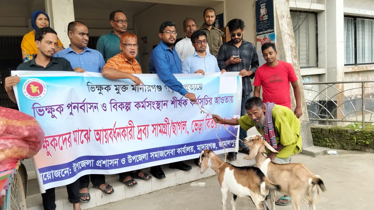 ভিক্ষুক পুনর্বাসন কর্মসূচির আওতায় ছাগল ও চেক বিতরণ