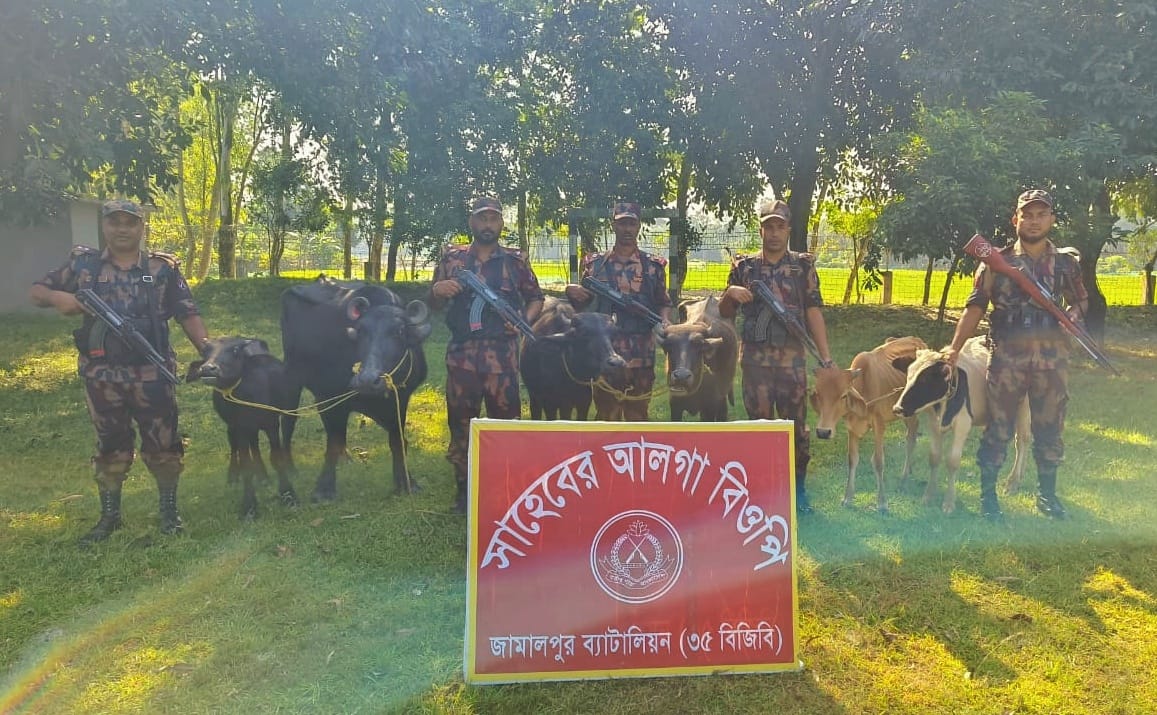 বিজিবি সূত্রে জানা গেছে, সোমবার (২১ অক্টোবর) গভীর রাতে ডিগ্রীরচর এলাকায় অভিযান চালায় সাহেবের আলগা বিওপির টহল দল। রাত আনুমানিক ৩টার দিকে সীমান্ত পিলার ১০৫১/এমপি হতে প্রায় ৫০০ গজ বাংলাদেশের অভ্যন্তরে ডিগ্রীরচর নামক স্থান থেকে ভারতীয় ২টি গরু ও ৪টি মহিষ আটক করা হয়। পরে জব্দকৃত চোরাচালানী মালামাল রৌমারী কাস্টমসে জমা দেওয়া হয়।