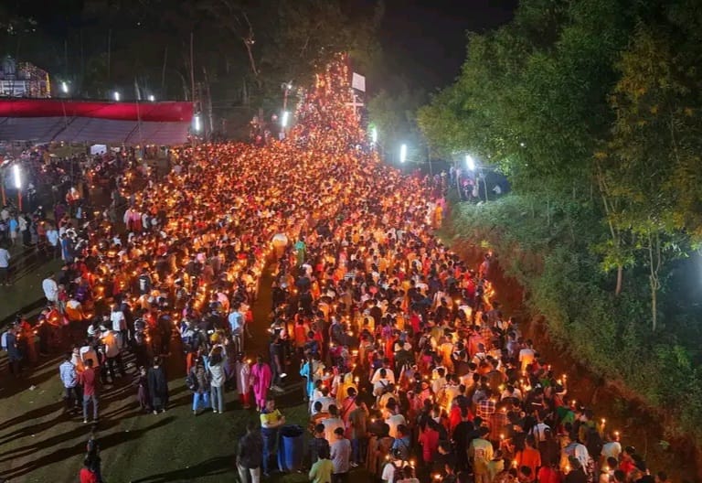 রাকিবুল আওয়াল পাপুল, শেরপুর: মনের বাসনা পূরণ ও পূণ্য লাভের আশায় ভক্তরা প্রায় দুই কিলোমিটার উঁচু-নিচু পাহাড়ি পথ অতিক্রম করেন। পাহাড়ি পথে প্রতিটি মোমবাতির আলোর ঝলকানিতে যেনো বয়ে আনে শান্তির বার্তা।