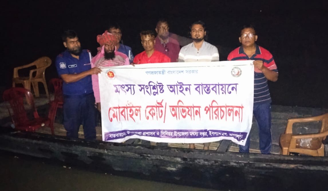 এসময়  সিনিয়র উপজেলা মৎস্য অফিসার,জাকির হোসেন সহ নৌ পুলিশের সদস্যরা উপস্থিত ছিলেন। জব্দকৃত মালমাল নৌ পুলিশের হেফাজতে রয়েছে।