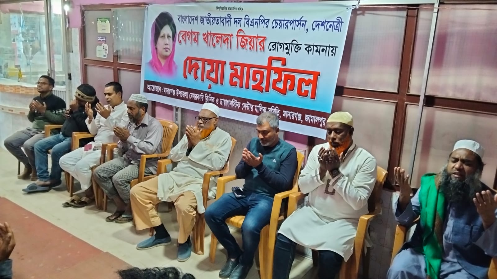 এম আর সাইফুল, মাদারগঞ্জ: জামালপুরের মাদারগঞ্জে বিএনপির চেয়ারপার্সন বেগম খালেদা জিয়ার আশু রোগমুক্তি ও সুস্থতা কামনায় দোয়া ও মিলাদ মাহফিল অনুষ্ঠিত হয়েছে।