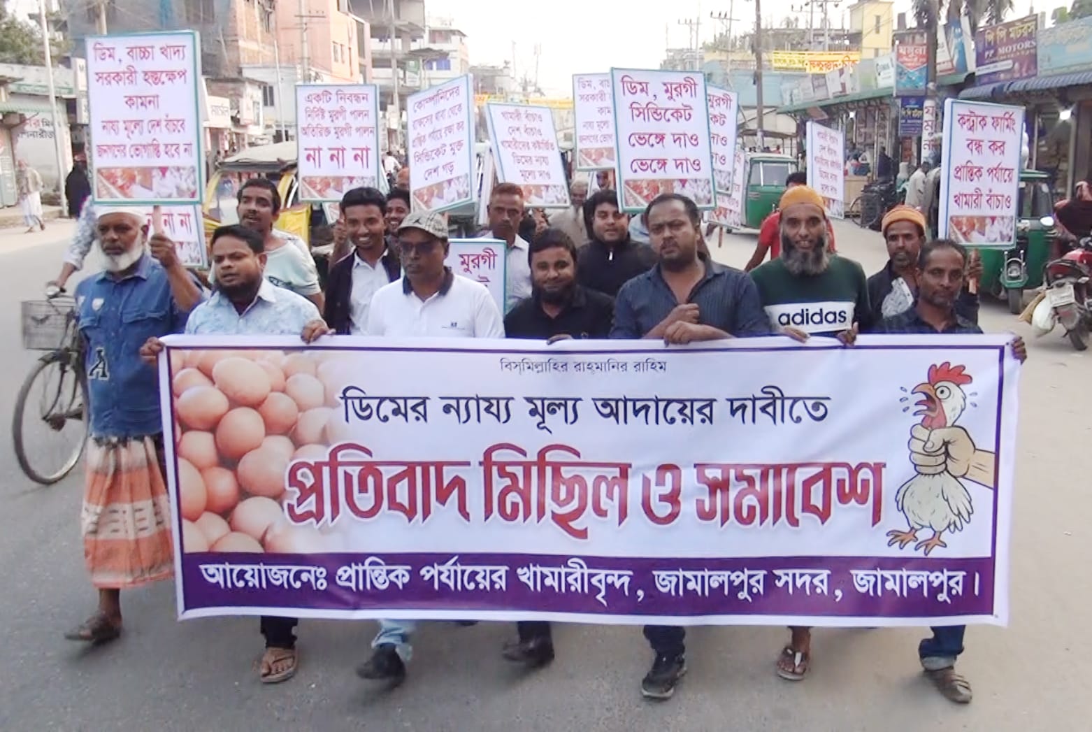 শফিকুল ইসলাম,জামালপুর: জামালপুরে ডিমের ন্যায্য মূল্য আদায়ের দাবীতে প্রতিবাদ মিছিল ও সমাবেশ অনুষ্ঠিত হয়েছে।