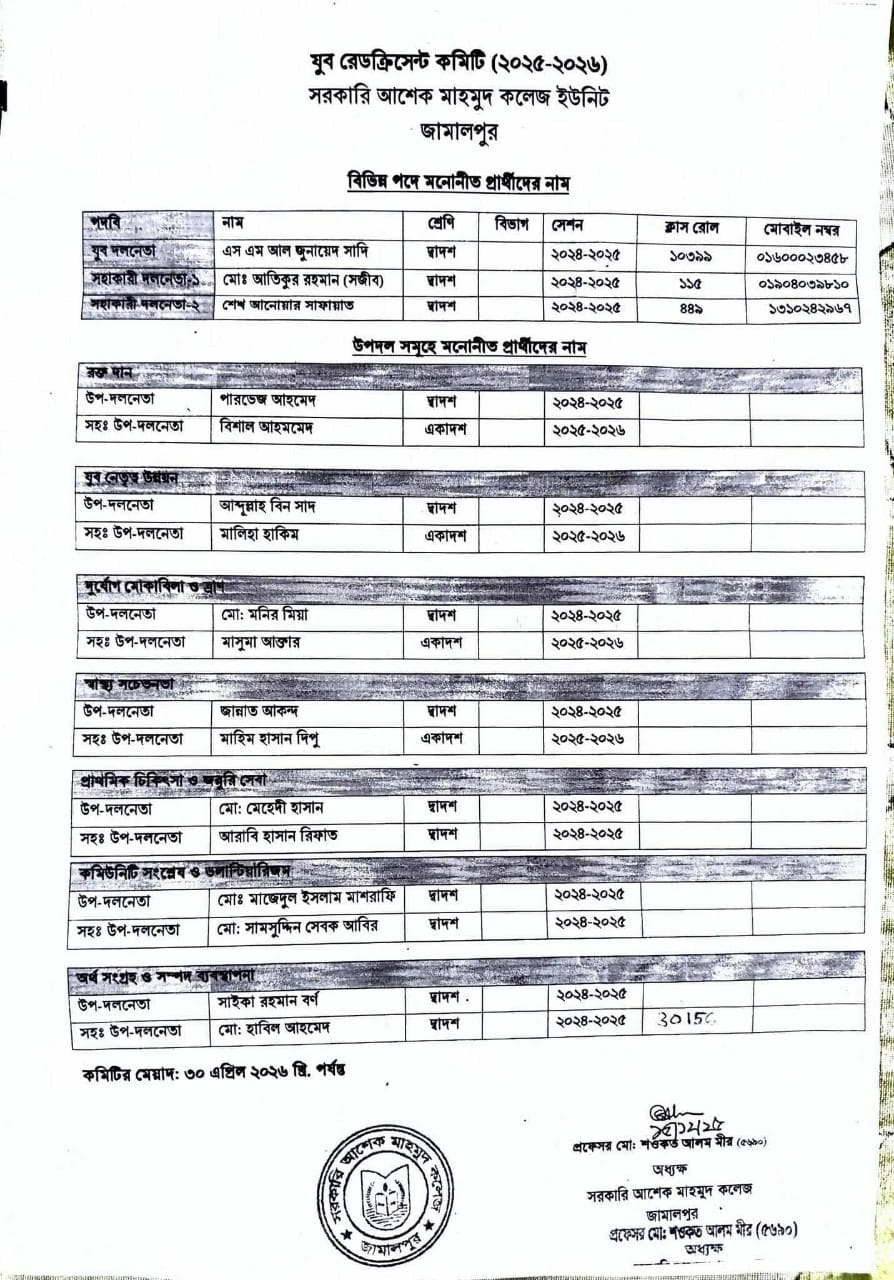 স্টাফ রিপোর্টার: গঠনের একদিন পর স্থগিত করা হয়েছে সরকারি আশেক মাহমুদ কলেজ যুব রেড ক্রিসেন্ট ইউনিট কমিটির কার্যক্রম।