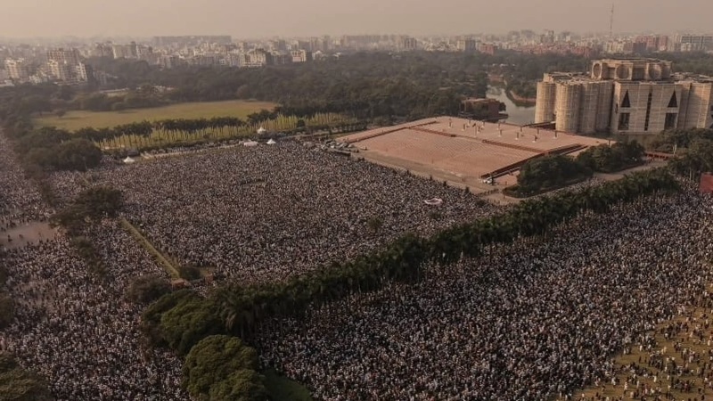 দুপুর ১টার মধ্যে জাতীয় সংসদের দক্ষিণ প্লাজার দুটি বড় মাঠ মানুষে পরিপূর্ণ হয়ে যায়। এরপর মানুষের উপস্থিতিতে মানিক মিয়া অ্যাভিনিউর বিশাল রাজপথ ছাপিয়ে ফার্মগেটের খামারবাড়ী, আসাদগেট পর্যন্ত পরিপূর্ণ হয়ে যায়। বাংলাদেশ-চীন মৈত্রী সম্মেলন কেন্দ্র পর্যন্ত ছিল মানুষ আর মানুষ।
