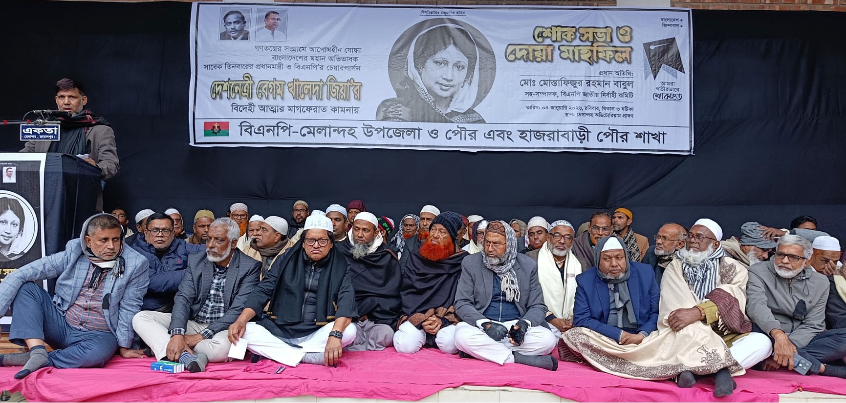 বেগম খালেদা জিয়ার মাগফেরাত কামনায় মেলান্দহে শোকসভা ও দোয়া