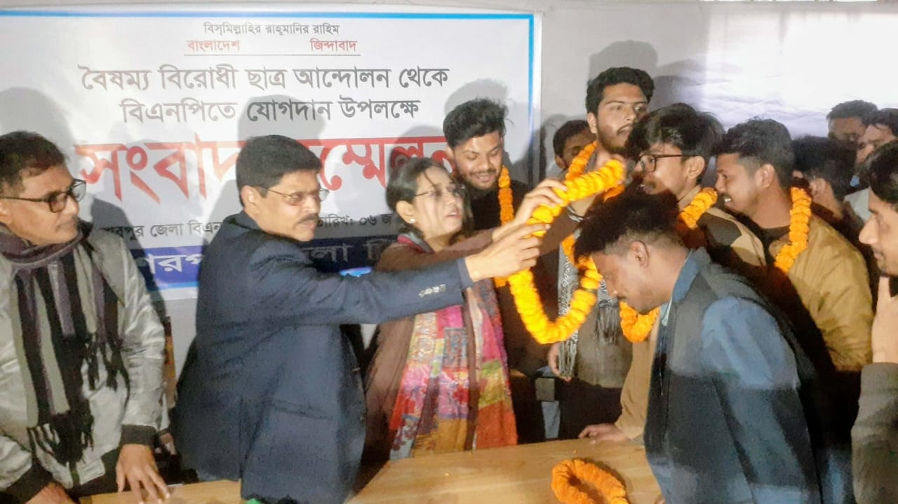 বৈষম্যবিরোধী ছাত্র আন্দোলনের শেরপুর জেলার প্রধান সমন্বয়ক ও মুখপাত্র ফারহান ফুয়াদ তুহিন এর নেতৃত্বে তারা বিএনপিতে যোগদান করেন।