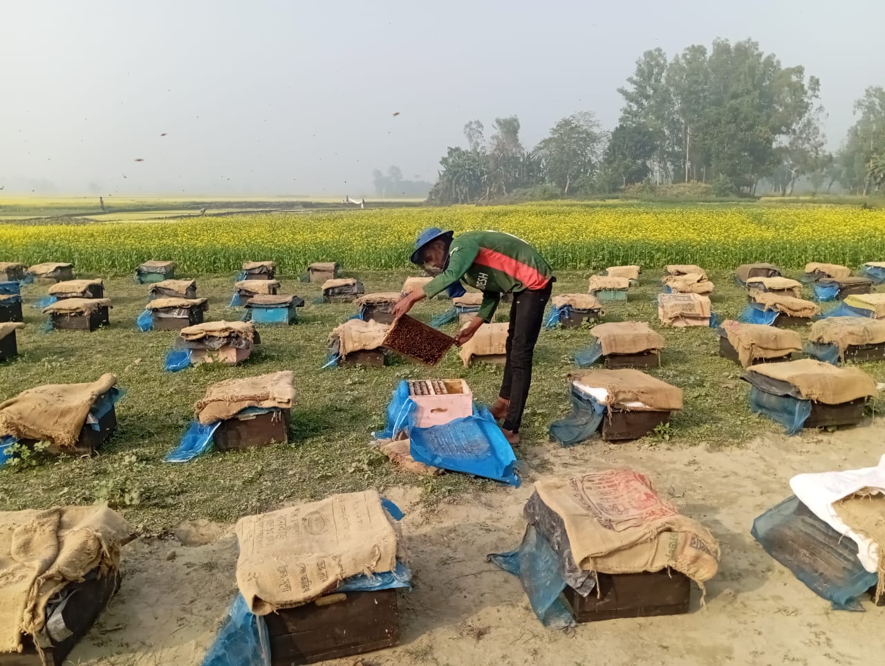 পোষা মৌমাছিতে মধু সংগ্রহে ব্যস্ত মৌয়াল