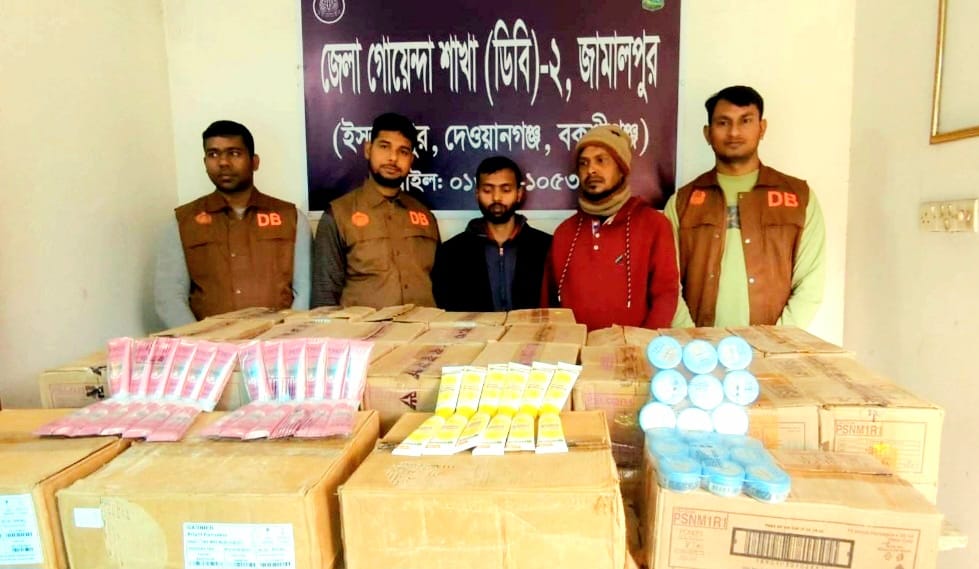 ম‌তিন রহমান,বকশীগঞ্জ: জামালপুরের বকশীগঞ্জে ডিবি পুলিশের (ডিবি-২) অভিযানে বিপুল পরিমাণ ভারতীয় চোরাই প্রসাধনীসহ দুই ব্যক্তিকে আটক করা হয়েছে।