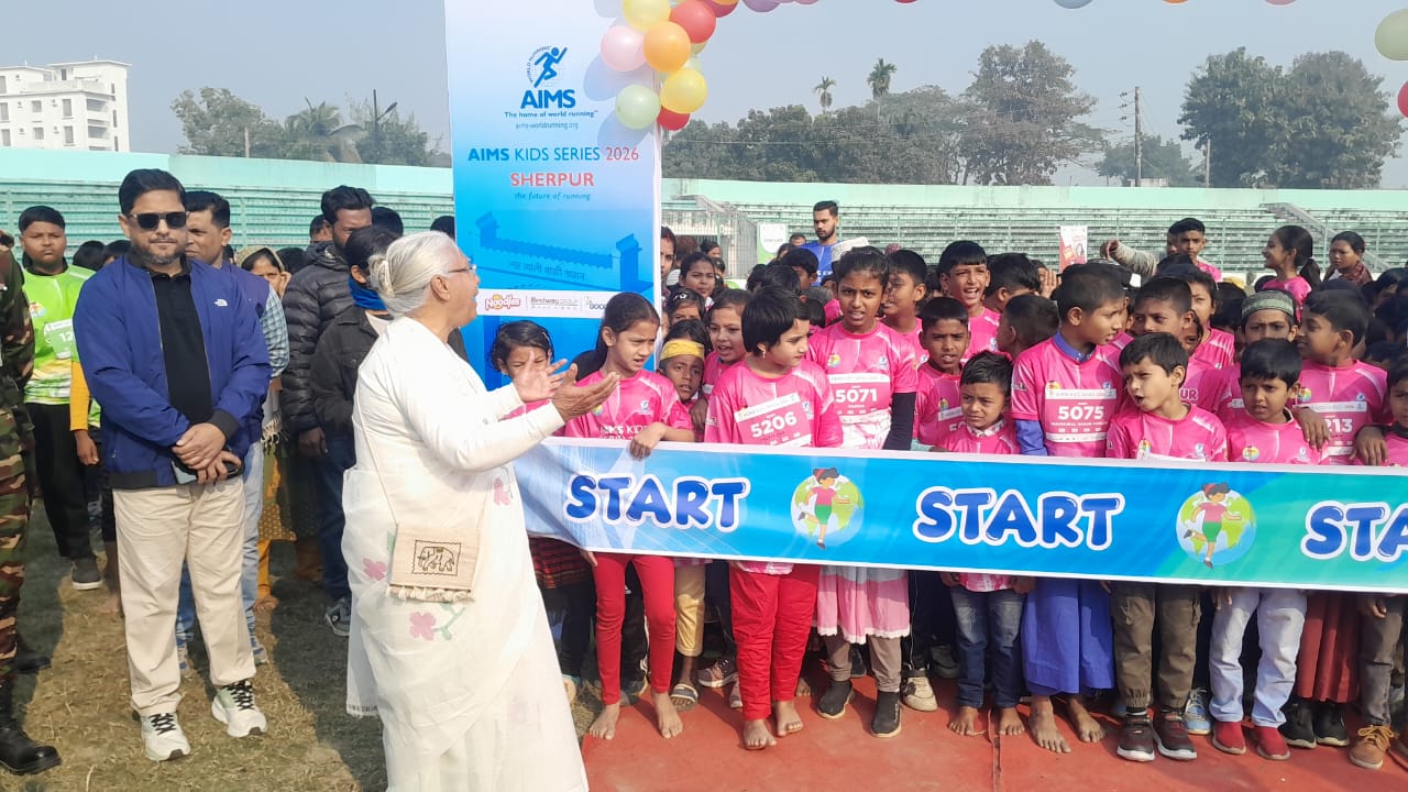 আয়োজকরা জানান- মহান স্বাধীনতার ৫৪ বছর উপলক্ষে রানবাংলা ও শেরপুর রানার্স কমিউনিটির সহযোগিতায় অ্যাসোসিয়েশন অব ইন্টারন্যাশনাল ম্যারাথন্স-এইমস কিডস সিরিজের এ দৌড় প্রতিযোগিতায় ১০০ মিটার, ৫০০ মিটার ও ১ হাজার মিটার- এ তিনটি ক্যাটাগরিতে ২ থেকে ১৪ বছর বয়সী প্রায় ৬০০ শিশু অংশ নেয়। রেজিস্ট্রেশন ফি ছিল মাত্র ৫৪ টাকা। তাদের মধ্যে অর্ধেকই শেরপুর জেলার গারো পাহাড়ি এলাকার পিছিয়ে পড়া ক্ষুদ্র নৃ-জনগোষ্ঠী, বেদে ও হরিজন পল্লীর শিশু। এছাড়া প্রত্যন্ত অঞ্চলের মাদ্রাসার শিশুরাও এতে অংশ নেয়। প্রত্যেক প্রতিযোগী শিশুর জন্য ছিল জার্সি, মেডেল, খাবার ও উপহার। ছোট ছোট শিশুদের দৌড় দেখতে স্টেডিয়ামে উপস্থিত দর্শক উৎসাহ-উদ্দীপনায় মেতে ওঠেন। দৌড় শেষে ক্ষুদ্র নৃ-গোষ্ঠীর শিল্পীদের অংশগ্রহণে মনোজ্ঞ নৃত্য পরিবেশন করা হয়। শিশুদের স্বাস্থ্য, শিক্ষা ও খেলাধুলার প্রতি আগ্রহ বাড়াতে এ ধরনের উদ্যোগকে সাধুবাদ জানিয়েছেন স্থানীয় সচেতন মহল।