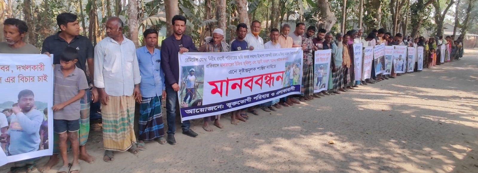 প্রবাসী পরিবারের জমি দখলের চেষ্টার প্রতিবাদে মানববন্ধন
