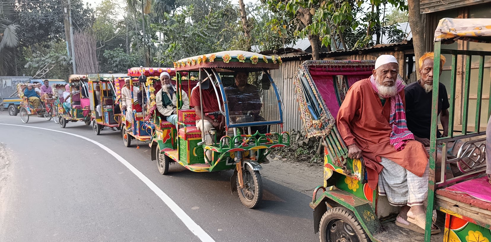 আব্দুল গফুর (৮০) বলেন-‘আমি আগে রিক্সা চালাইতাম, এখন নিজেই চলতে পারি না, অচল। আমি আমার স্ত্রীকে নিয়ে সাড়ে তিনি বছর পর রিক্সায় করে ঘুরলাম, আমার খুব ভালো লাগছে।’