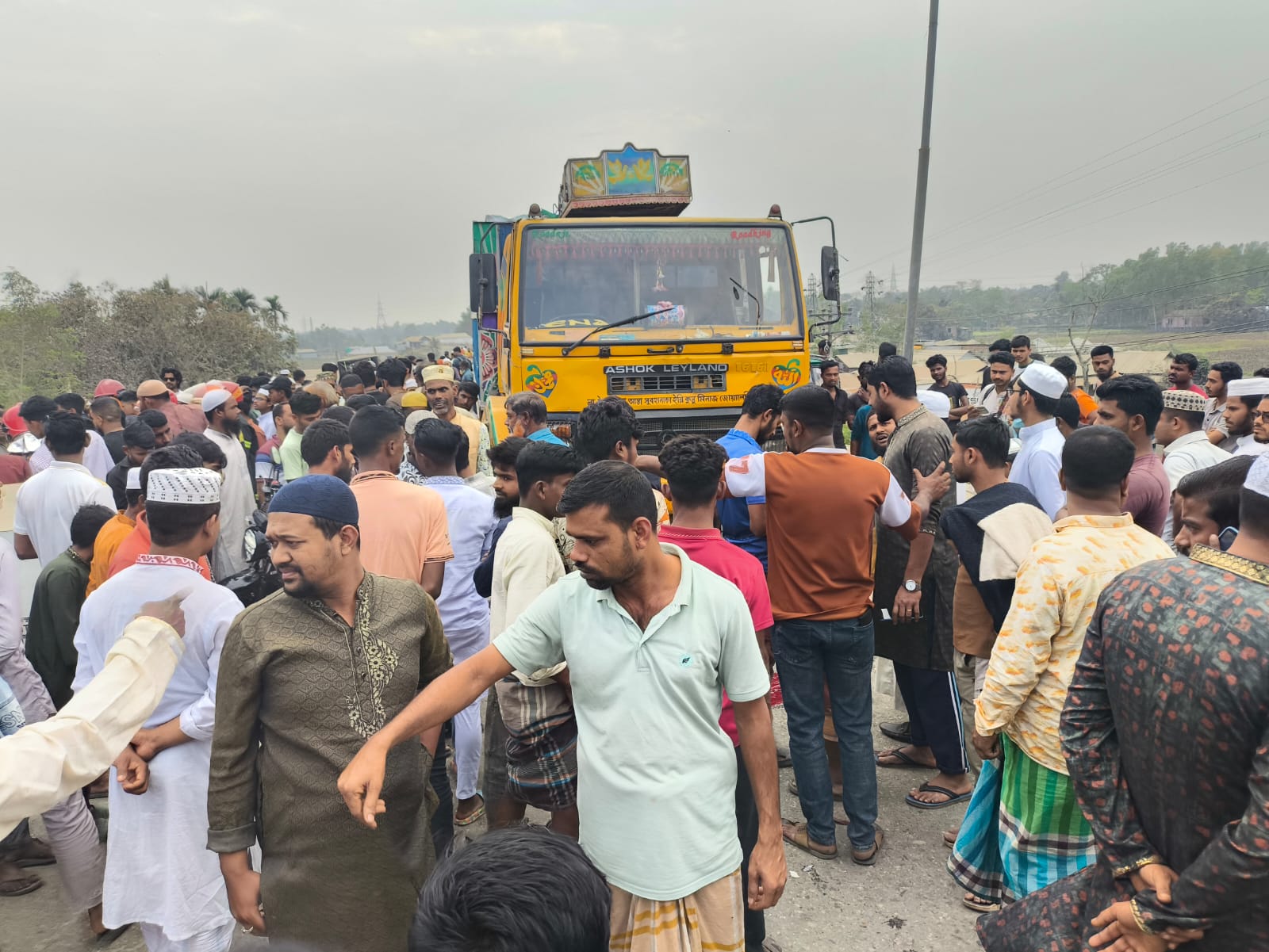 পুলিশের চেকপোস্টে ট্রাকের ধাক্কায় বাবা-ছেলের মৃত্যু, মহাসড়ক অবরোধ