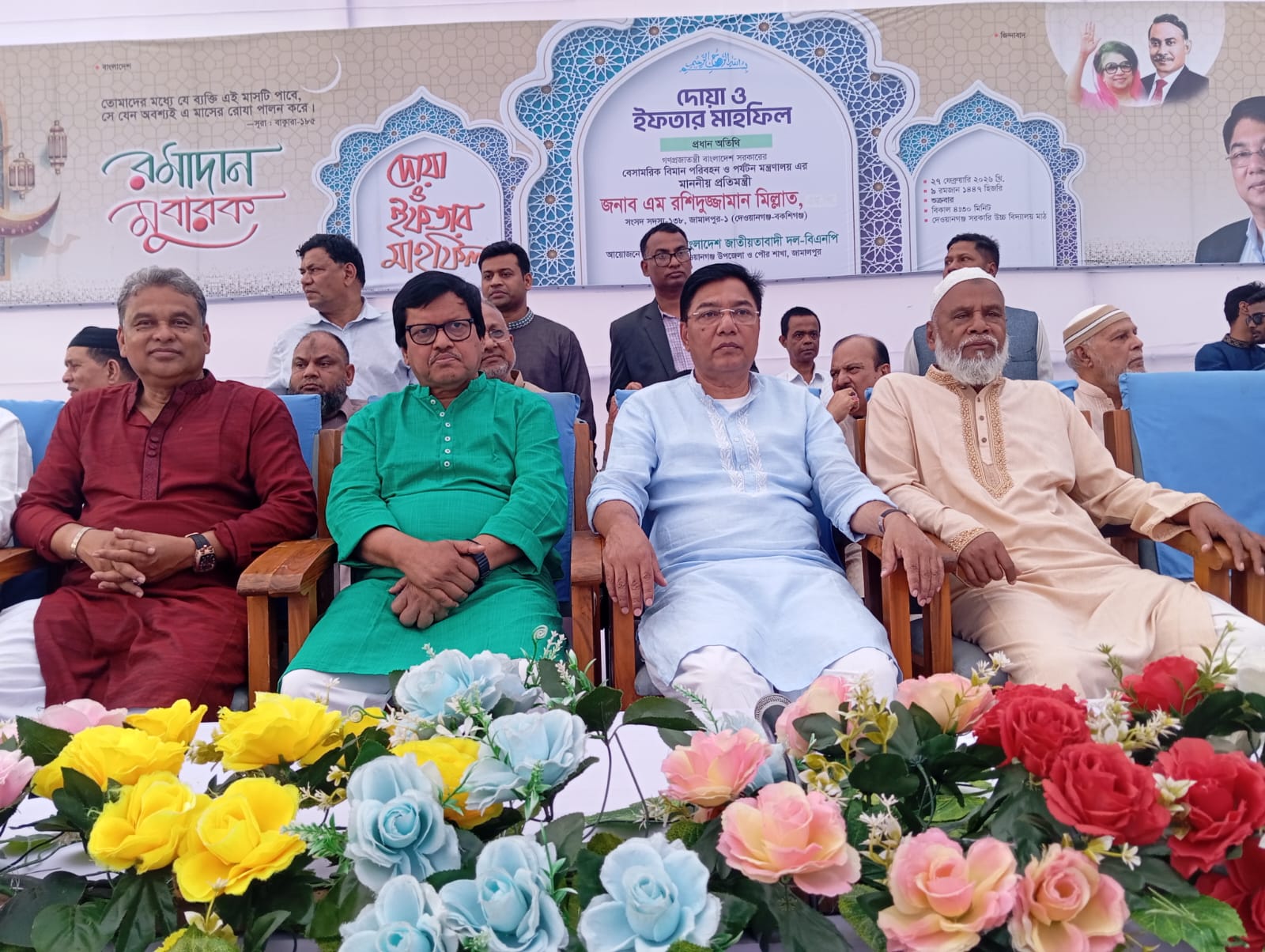 অনুষ্ঠানে আরও বক্তব্য দেন, বিএনপির কেন্দ্রীয় নেতা ও জামালপুর ৩ আসনের সংসদ সদস্য মোস্তাফিজুর রহমান বাবুল, জেলা বিএনপির সভাপতি ও জামালপুর ৪ আসনের সংসদ সদস্য ফরিদুল কবীর তালুকদার, জেলা বিএনপির সাধারণ সম্পাদক ও জামালপুর ৫ আসনের সংসদ সদস্য ওয়ারেছ আলী মামুন।