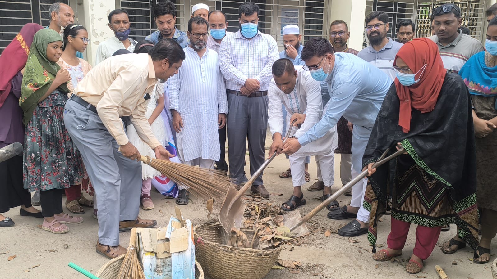 এ সময় বিভিন্ন শিক্ষা প্রতিষ্ঠানের শিক্ষক-শিক্ষার্থী ও স্থানীয় গণ্যমান্য ব্যক্তিদের অংশগ্রহণে ঝুড়িতে ময়লা তুলে পরিষ্কার পরিচ্ছন্নতার কার্যক্রমের মাধ্যমে অভিযানের সূচনা করা হয়।