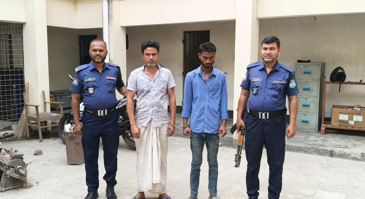 গ্রেফতার ব্যক্তিরা হলেন- একই এলাকার আজিজুর রহমানের ছেলে গোলাম কিবরিয়া মুক্তা (২৮) ও সেই ওয়ার্ডের ইউপি সদস্য নায়েব আলীর ছেলে মো: হৃদয় (১৯)।