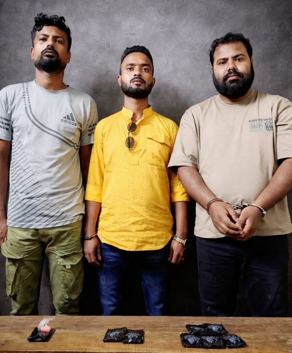 মাদকদ্রব্য নিয়ন্ত্রণ অধিদপ্তর জানায়- গোপন সংবাদের ভিত্তিতে সোমবার বিকেলে তিনানীপাড়া এলাকায় মহাসড়কের ওপর মাদকবিরোধী অবস্থান নেয় অধিদপ্তরের একটি দল। এ সময় সন্দেহভাজন হিসেবে ওই তিনজনকে আটক করা হয়। পরে তাঁদের দেহ তল্লাশি করে ১ হাজার ৭৯০ পিস ইয়াবা ট্যাবলেট ও ৬ গ্রাম ইয়াবার গুঁড়া উদ্ধার করা হয়।