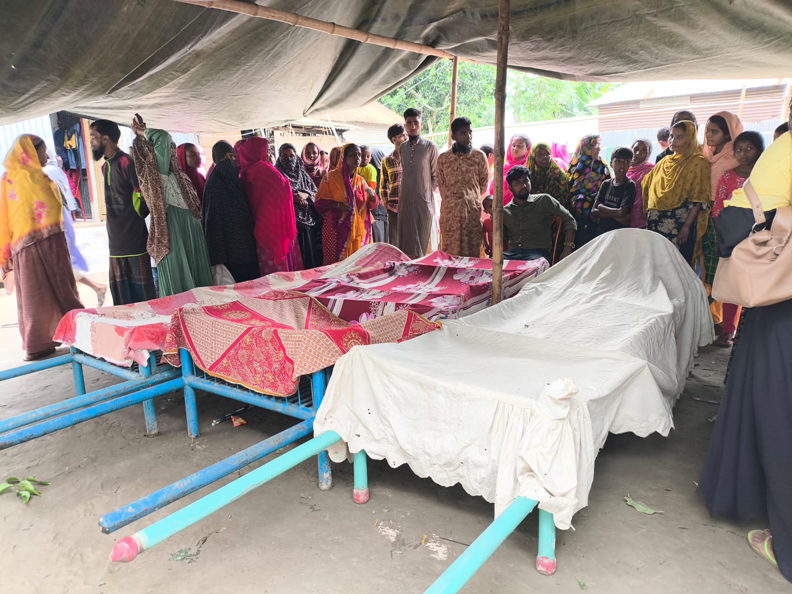 একই গ্রামের বাসিন্দা হেলাল মিয়া বলেন- ‘একই পরিবারের তিনজনের মৃত্যুতে শোকাহত গোটা অঞ্চল। মারা যাওয়া সকলে গরীব। তাই গ্রামের সকলে মিলে দাফনের ব্যবস্থা করছে৷’