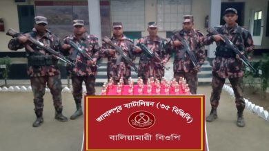 বিজিবির অভিযানে বালিয়ামারী সীমান্তে গাঁজা ও মদ আটক