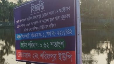 জেলা প্রশাসনের বুঝিয়ে দেয়া পুকুরে পলাতক ইউপি চেয়ারম্যানের নামে সাইনবোর্ড