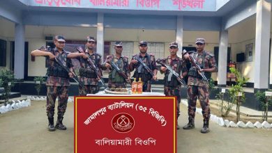 বিজিবির অভিযানে বালিয়ামারী সীমান্তে গাঁজা ও মদ আটক